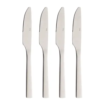 Raw μαχαίρι δείπνου 4 τεμαχίων από Aida είναι μια σειρά μαχαιροπίρουνων με απλό ύφος, δημιουργημένη για το βορειοευρωπαϊκό τραπέζι. Σχεδιασμένα σε συνεργασία με την Christiane Schaumburg-Müller, αυτά τα μαχαίρια προσφέρουν ισορροπία ανάμεσα στη λειτουργία και την αισθητική — ιδανικά για το καθημερινό δείπνο αλλά και για σερβίρισμα σε καλεσμένους. Η λαβή εφαρμόζει άνετα στο χέρι και ο λιτός σχεδιασμός ενσωματώνεται σε διάφορα στυλ σερβιρίσματος. Ένα πρακτικό πακέτο 4 τεμαχίων που καθιστά εύκολο το αναβάθμισμα του συρταριού με μαχαιροπίρουνα με σκεπτόμενο σκανδιναβικό design.