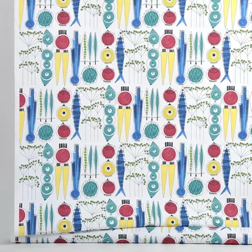 Το Picknick μουσαμάς από την Almedahls είναι μια υπέροχη, πολύχρωμη βάση για το στρώσιμο του τραπεζιού. Είναι κατασκευασμένο από βαμβάκι επικαλυμμένο με ακρυλική επίστρωση, που καθαρίζεται εύκολα, αλλά δεν αισθάνεται πλαστικό όπως ένας κλασικός μουσαμάς. Η υφή του θυμίζει περισσότερο ένα συνηθισμένο τραπεζομάντιλο. Το Picknick σχεδιάστηκε από την Marianne Westman το 1954 και είναι μια πραγματική ρετρό κλασική αξία.