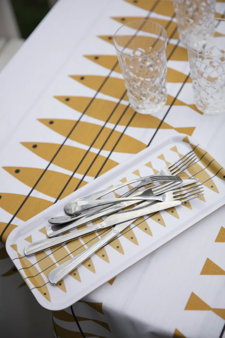 Το Sill μουσαμάς με το μέτρο από την Almedahls γίνεται μια ωραία βάση για το τραπέζι και ταιριάζει ιδιαίτερα καλά κατά τους καλοκαιρινούς μήνες. Είναι κατασκευασμένο από βαμβάκι με επικάλυψη ακρυλικού και δεν είναι τόσο γυαλιστερό όσο ένα κλασικό μουσαμά. Μοιάζει περισσότερο με ένα τραπεζομάντηλο που είναι πολύ εύκολο να καθαριστεί. Το μοτίβο Sill σχεδιάστηκε από την Marianne Nilsson τη δεκαετία του 1950 και είναι μια πραγματική ρετρό κλασική!