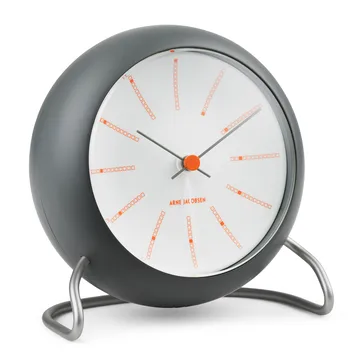 AJ Bankers επιτραπέζιο ρολόι Ø11 cm από Arne Jacobsen Clocks είναι ένα διαχρονικό και κομψό ρολόι σχεδιασμένο από τον Arne Jacobsen. Με ξυπνητήρι, φωτισμό με touch και snooze, είναι εξίσου πρακτικό όσο όμορφο στο κομοδίνο ή στην κρεβατοκάμαρα. Ο μηχανισμός quartz λειτουργεί με 2 x AA μπαταρίες, καθιστώντας το εύκολο στην τοποθέτηση χωρίς καλώδια. Το στρογγυλό, καλά ισορροπημένο σχήμα και το καθαρό καντράν αντικατοπτρίζουν την κλασική σκανδιναβική σχεδίαση και καθιστούν το ρολόι μια διακριτική αλλά δυνατή διακοσμητική λεπτομέρεια στο σπίτι.