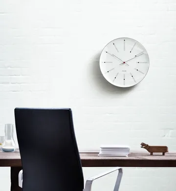 Arne Jacobsen Bankers ρολόι τοίχου από Arne Jacobsen Clocks είναι ένα διαχρονικό ρολόι τοίχου σχεδιασμένο από τον Arne Jacobsen το 1971. Αρχικά δημιουργημένο για την Danmarks Nationalbank, αποτυπώνει τη κλασική σιλουέτα και τα παιχνιδιάρικα στοιχεία όπως τη διατρέχουσα σπείρα που με κομψότητα δείχνει τη ροή του χρόνου. Το ρολόι διαθέτει mineral glass, κάσα καντράν από αλουμίνιο και quartz movement για αξιόπιστη λειτουργία. Ως εικονίδιο στο σπίτι λειτουργεί εξίσου καλά στο χολ, την κουζίνα ή το σαλόνι, προσδίδοντας χαρακτήρα στον χώρο χωρίς να τον κυριεύει. Ένα τέλειο design classic για όποιον εκτιμά τη στοχαστική σχεδίαση.