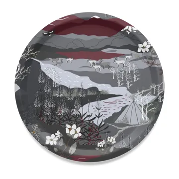Δίσκος, Fjällvandring, Ø31 εκ. Δίσκος Ø31 εκ. Fjällvandring από Arvidssons Textil, κατασκευασμένος από FSC-πιστοποιημένο κόντρα πλακέ σημύδας με ένα σχέδιο σχεδιασμένο από τη Louise Videlyck, εμπνευσμένο από τα βουνά της βόρειας Σουηδίας. Ο στρογγυλός δίσκος λειτουργεί τόσο ως υπόστρωμα σερβιρίσματος όσο και ως διακοσμητικό στοιχείο στην κουζίνα.