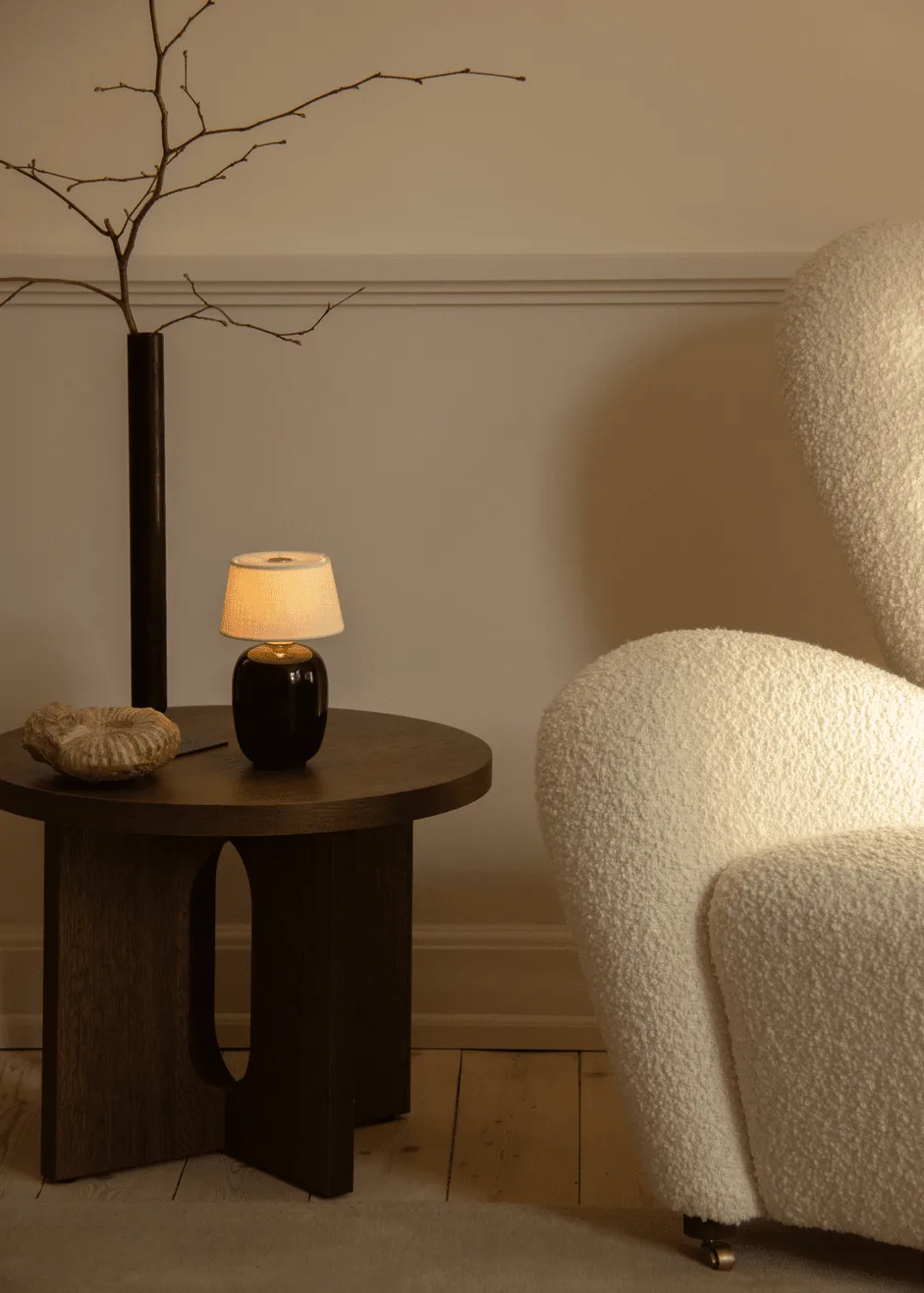 Το Vincent επιτραπέζιο φωτιστικό φορητό από τη δανέζικη Audo Copenhagen είναι σχεδιασμένο από τον Kroeyer-Saetter-Lassen και είναι το μικρό και φορητό φωτιστικό της μεγαλύτερης έκδοσης του επιτραπέζιου φωτιστικού Vincent. Η βάση του φωτιστικού είναι κατασκευασμένη από αμαγάριστο λίθο και έχει μια απαλή στρογγυλή μορφή, η οποία αντιπαρατίθεται όμορφα με τις ίσιες γραμμές του χειροποίητου αμπαζούρ σε διάφανο λινό. Σε αυτά τα απλά και όμορφα υλικά θα βρείτε λεπτομέρειες από ορείχαλκο στη βάση του φωτιστικού και στην κορυφή του αμπαζούρ. Ο ορειχάλκινος κύλινδρος στην κορυφή λειτουργεί σαν διακόπτης αφής επιτρέποντάς σας να μειώσετε το φως σε τρία επίπεδα αγγίζοντας ελαφρώς. Το φορητό επιτραπέζιο φωτιστικό είναι πολύ εύκολο να τοποθετηθεί και μπορεί εύκολα να μεταφερθεί στο επόμενο δωμάτιο χάρη στο μέγεθός του και στο ότι είναι ασύρματο.