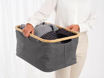 Brabantia αναδιπλούμενο καλάθι πλυντηρίου 40 L είναι κατασκευασμένο από βαμβάκι, συνθετικό υλικό, ανακυκλωμένο πολυπροπυλένιο, ατσάλι και ABS. Αυτό το ορθογώνιο καλάθι πλυντηρίου χωρά έως 40 λίτρα ρούχων, αλλά μπορεί εύκολα να διπλωθεί επίπεδα για εξοικονόμηση χώρου. Επιπλέον λειτουργεί εξαιρετικά ως κουτί αποθήκευσης για χαρτί ή παιχνίδια.