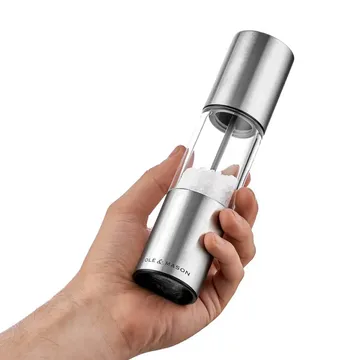 Το Σετ μύλοι OSLO 18,5 cm διαφανές από Cole & Mason είναι κατασκευασμένο από ακρυλικό και ανοξείδωτο χάλυβα. Αυτό το κομψό σετ περιλαμβάνει και μύλο αλατιού και μύλο πιπεριού, εφοδιασμένα με έναν κατεργασμένο μηχανισμό από ανθρακοχάλυβα για το πιπέρι και έναν κεραμικό μηχανισμό με διαμαντένια λεπίδα για το αλάτι. Οι μύλοι διαθέτουν έναν ελατηριωτό μηχανισμό που διευκολύνει την προσαρμογή του βαθμού άλεσης από λεπτό σε χοντρό. Παραδίδονται γεμάτοι και παρουσιάζονται σε ένα κομψό κουτί, με εγγύηση εφ’ όρου ζωής για τον μηχανισμό.