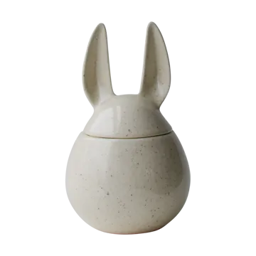 DBKD Eating rabbit μικρό μπολ είναι κατασκευασμένο από κεραμικό και μπορεί να χρησιμοποιηθεί τόσο ως δοχείο αποθήκευσης για μικροαντικείμενα όσο και ως μπολ σερβιρίσματος για πασχαλινά γλυκίσματα. Χάρη στο έξυπνο και χαριτωμένο καπάκι, τα γλυκίσματα παραμένουν φρέσκα για περισσότερη ώρα. Η απαλή και μινιμαλιστική σιλουέτα με τα δύο κουνεχίσια αυτιά είναι μια σύγχρονη ερμηνεία του κλασικού πασχαλινού λαγού και γίνεται μια γοητευτική διακόσμηση στο τραπέζι ή στο περβάζι του παραθύρου κατά το Πάσχα.