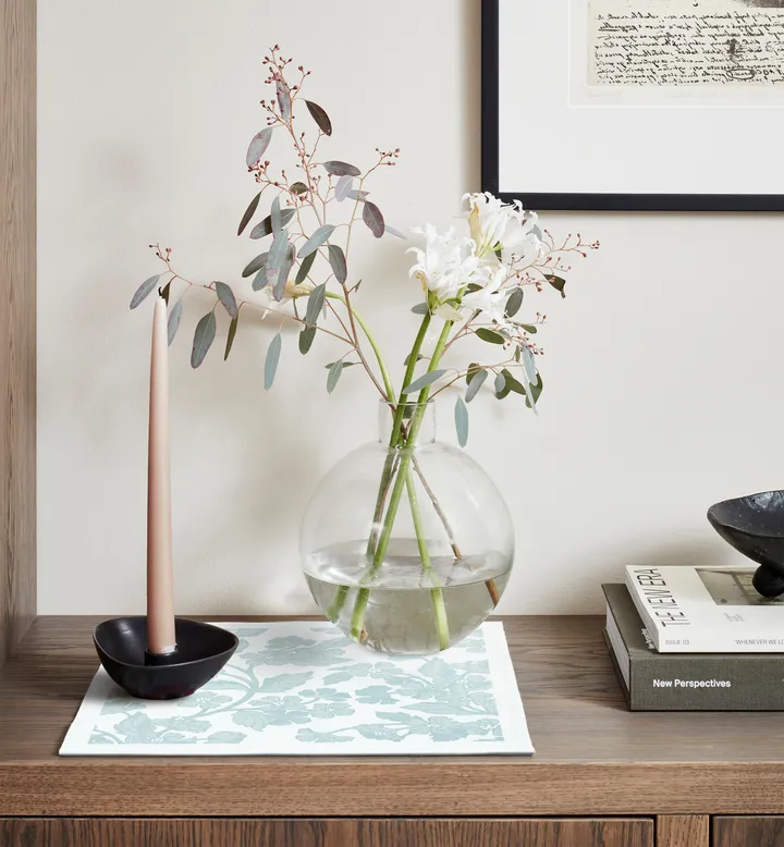 Blomranka πετσέτα 35x35 cm από το σουηδικό Ekelund είναι κατασκευασμένη από GOTS-πιστοποιημένο οργανικό βαμβάκι και λινό και είναι μια ανθεκτική πετσέτα που μπορεί να χρησιμοποιηθεί ξανά και ξανά. Η βαμβακερή πετσέτα ταιριάζει εξίσου καλά για επίσημη τραπεζοδιακόσμηση όσο και για μικρό τραπεζάκι.
