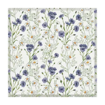 Υφασμένο τραπεζομάντιλο από βιολογικό βαμβάκι από τη σουηδική Ekelund, γνωστή για τα υψηλής ποιότητας κλωστοϋφαντουργικά προϊόντα της. Στο μοτίβο του βαμβακερού τραπεζομάντιλου βρίσκονται μαργαρίτες και κενταύριες, δύο τυπικά καλοκαιρινά λουλούδια της Σουηδίας.