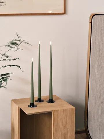 ester & erik λιανοκέρια λευκά LED 30 cm συσκευασία 2 τεμαχίων είναι κατασκευασμένα από αληθινό κερί και προσφέρονται στα κλασικά χρώματα της ester & erik. Με μια ρεαλιστική 3D LED φλόγα που τρεμοπαίζει απαλά, τα κεριά διαχέουν ένα ζεστό και φιλόξενο φως. Η κομψή σχεδίαση των κεριών, πιστή στην εμβληματική μορφή της ester & erik, ταιριάζει τέλεια σε πολλούς διαφορετικούς κηροπήγια χάρη στη ευέλικτη βάση. Δημιουργήστε ατμοσφαιρικό φωτισμό στο σπίτι σας χωρίς να διακυβεύετε την ασφάλεια – ιδανικά τόσο για γιορτινές περιστάσεις όσο και για καθημερινή χρήση.