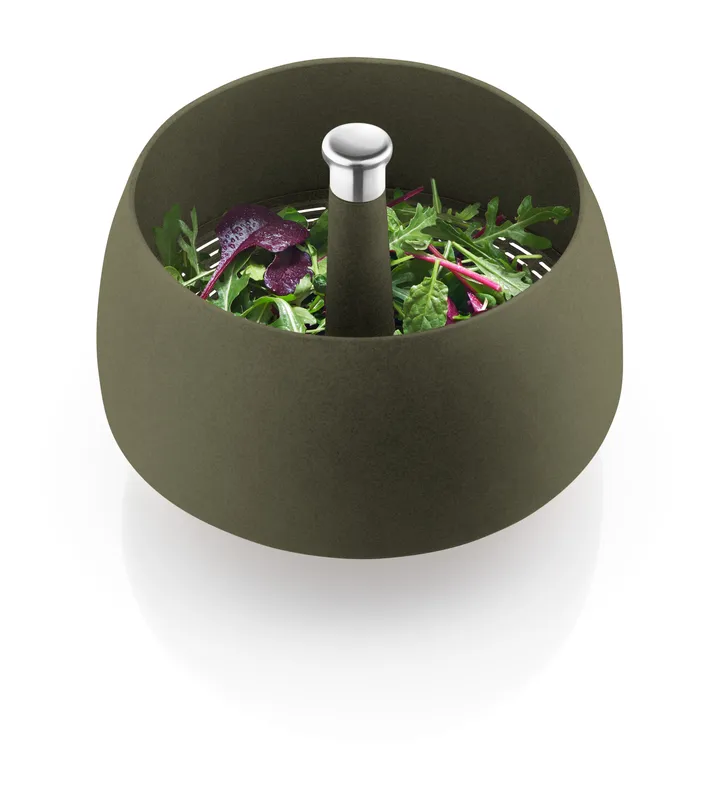 Το Eva Solo Green Tool δοχείο πλύσης σαλάτας είναι κατασκευασμένο από σύνθετο υλικό από ίνες σιταριού και πλαστικό με λεπτομέρειες από ανοξείδωτο ατσάλι. Αυτό το πολυλειτουργικό δοχείο πλύσης σαλάτας διαθέτει ενσωματωμένη λειτουργία στυψίματος – ξεπλύνετε τη σαλάτα και πιέστε τον άξονα στο κέντρο μερικές φορές για να αφήσετε το νερό να στραγγίσει από τον πάτο. Αυτό το ανθεκτικό μαγειρικό εργαλείο μπορεί επίσης να χρησιμοποιηθεί για να ξεπλύνετε άλλα λαχανικά και φρούτα, καθώς και για να στραγγίσετε τα ζυμαρικά.