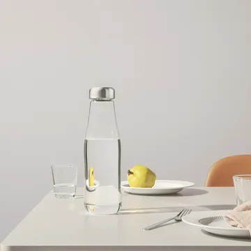 Η Eva Solo γυάλινη καράφα 1,3 L είναι μια μινιμαλιστική καράφα που είναι εντελώς χωρίς σταγόνες και στεγανή. Ο έξυπνος σχεδιασμός χωρίς σταγόνες της καράφας διασφαλίζει ότι δεν θα υπάρξουν διαρροές στο τραπεζομάντηλό σας όταν σερβίρετε τους καλεσμένους σας, ενώ η καράφα με το σχήμα μπουκαλιού και το στεγανό καπάκι έχει πολλά πλεονεκτήματα. Μπορείτε να αποθηκεύσετε νερό ή άλλα ποτά στο ψυγείο χωρίς να απορροφούν γεύσεις και μπορείτε επίσης να αποθηκεύσετε τη γυάλινη καράφα όρθια ή ξαπλωτή. Αν ανατραπεί στο τραπέζι, το καπάκι εμποδίζει το περιεχόμενο να χυθεί. Η Eva Solo γυάλινη καράφα 1,3 L είναι πρακτική για να την πάρετε μαζί σας στο πικνίκ και ωραία να την παρουσιάσετε στο τραπέζι.