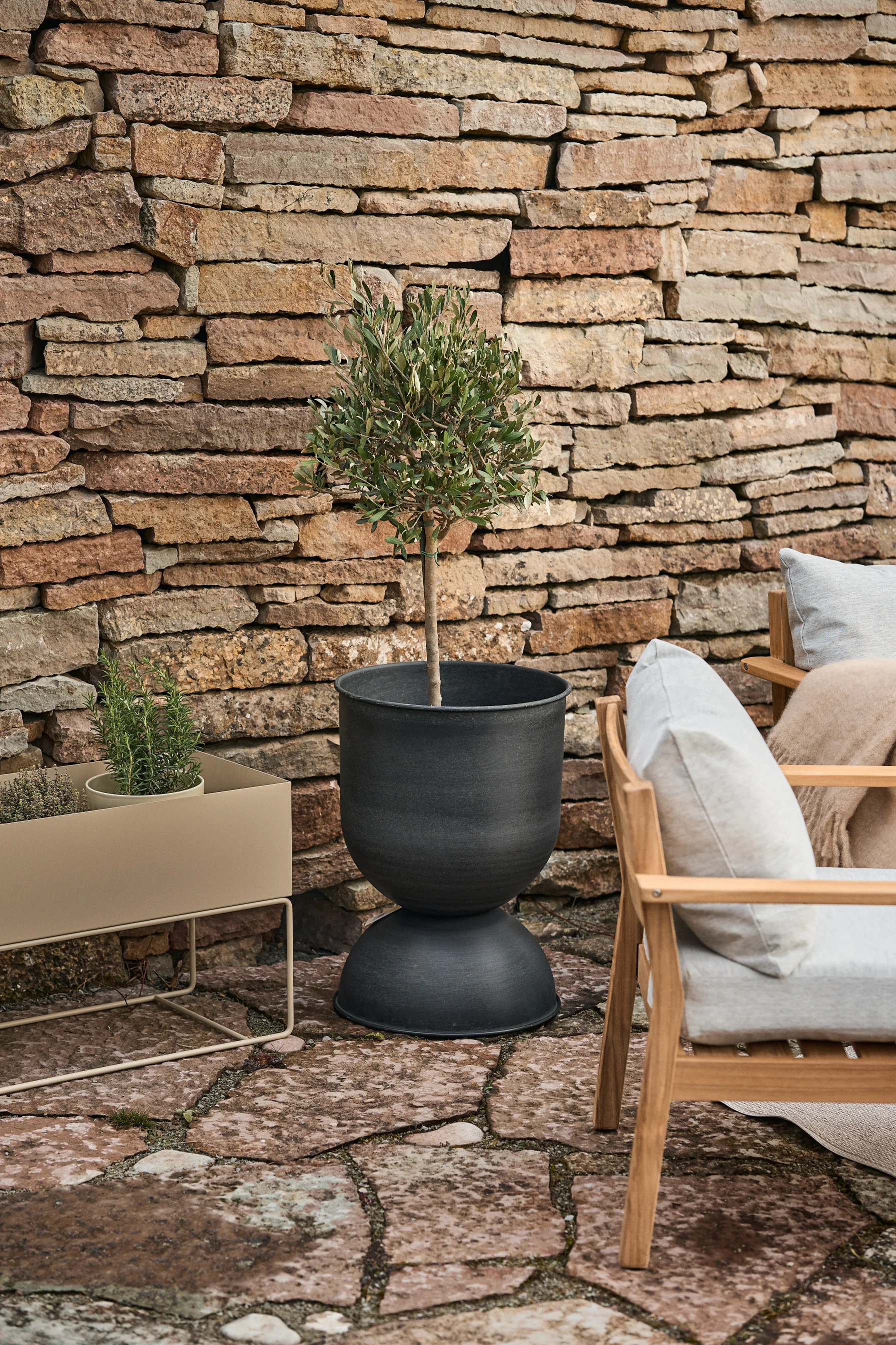 Hourglass γλάστρα μεγάλη Ø50 cm από τη Ferm Living είναι μια εντυπωσιακή γλάστρα σε σχήμα κλεψύδρας που ανασηκώνει τα φυτά σας από το έδαφος και τους δίνει μια όμορφη, ανυψωμένη θέση στο σπίτι. Ο σχεδιασμός είναι προσεγμένος με δύο εναλλακτικά μπολ που προσφέρουν ευελιξία στη χρήση — χρησιμοποιήστε τα ως ψηλότερο βάθρο ή ως ευρύχωρο δοχείο φύτευσης με άφθονο χώρο για τις ρίζες. Κατασκευασμένη από μεταλλικό υλικό με ηλεκτροστατική βαφή και ματ φινίρισμα, με ειδική επιφανειακή επεξεργασία που την καθιστά ανθεκτική για βεράντα ή μπαλκόνι. Εύκολη στην τοποθέτηση στο σαλόνι, στον διάδρομο ή στην αυλή για ισχυρό οπτικό αποτέλεσμα.