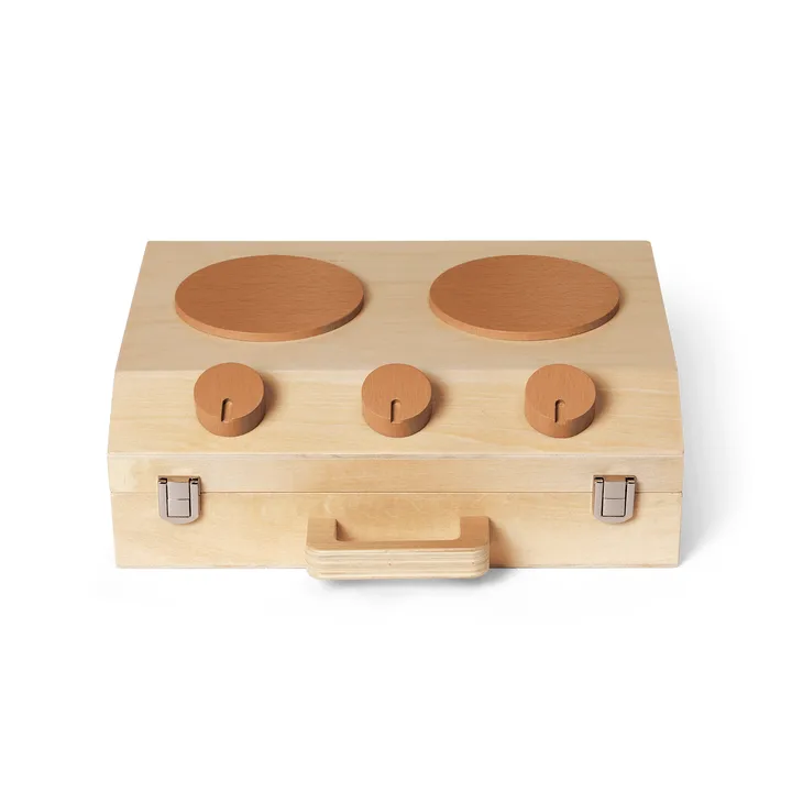 Το Σετ μαγειρικής Toro Suitcase Kitchen για παιδιά από τη Ferm Living είναι μία πλήρης μινιατούρα κουζίνα επιδέξια συσκευασμένη σε μία φορητή βαλίτσα. Το σετ, το οποίο είναι κατασκευασμένο από πιστοποιημένο ξύλο οξιάς FSC™, περιλαμβάνει μία κατσαρόλα, ένα τηγάνι και διάφορα εργαλεία, ιδανικό για να εμπνεύσει το δημιουργικό παιχνίδι των παιδιών. Ο συμπαγής σχεδιασμός το καθιστά εύκολο για ταξίδια ή για χρήση στο σπίτι.