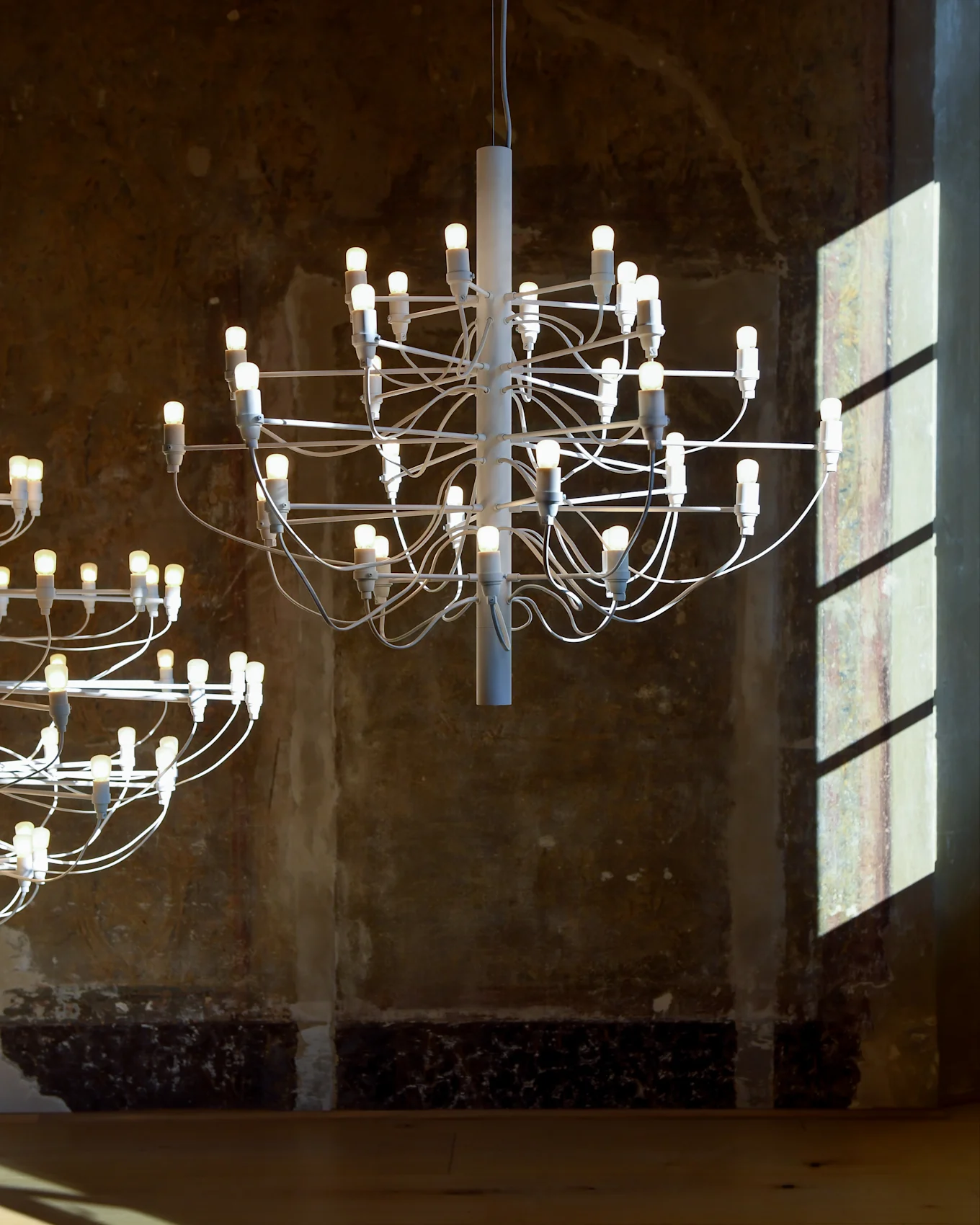 Ένα από τα πιο γνωστά σχέδια της Flos είναι ο πολυέλαιος 2097, δημιουργία του Gino Sarfatti. Κυκλοφόρησε για πρώτη φορά το 1958 και έχει γίνει σήμα κατατεθέν του σύγχρονου φωτισμού. Με την κομψή, βιομηχανική δομή του και τη ζεστή, ατμοσφαιρική λάμψη, ο 2097 παραμένει ένα διαχρονικό αριστούργημα, διαθέσιμο σε διάφορα φινιρίσματα όπως χρώμιο και ορείχαλκο.