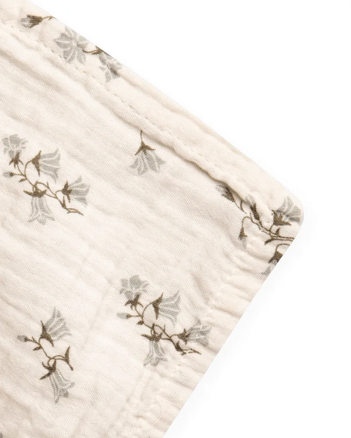 Το Bluebell Muslin Swaddle κουβέρτα από την Garbo&Friends είναι κατασκευασμένο από 100% μουσελίνα βαμβάκι, υφασμένο με το πιο εκλεκτό νήμα που το καθιστά απαλό, ελαφρύ και ανθεκτικό. Αυτή η κουβέρτα, διακοσμημένη με το χαρακτηριστικό μοτίβο της εταιρείας, μετράει 110x110 cm, γεγονός που την καθιστά ιδανική για να τυλίγετε το μικρό σας παιδί, να την χρησιμοποιείτε στο καροτσάκι ή ως ένα λεπτό επιπλέον στρώμα κατά τη διάρκεια του ύπνου της ημέρας. Ηθικά κατασκευασμένη στην Πορτογαλία και είναι πιστοποιημένη κατά OEKO-TEX®.