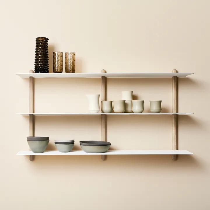 Nivo ράφι D μεγάλο από την δανεζική Gejst έχει σχεδιαστεί από τους Böttcher & Kayser οι οποίοι κατά τον σχεδιασμό έχουν λάβει εξίσου υπόψη τη λειτουργικότητα του ραφιού όσο και τη μορφή του. Το minimalistic επιτοίχιο ράφι δύο επιπέδων έχει κομψό σχεδιασμό με καθαρές γραμμές χωρίς ορατές βίδες. Το ράφι αποτελεί μια κομψή και πρακτική προσθήκη, για παράδειγμα, στην κουζίνα ή το σαλόνι.