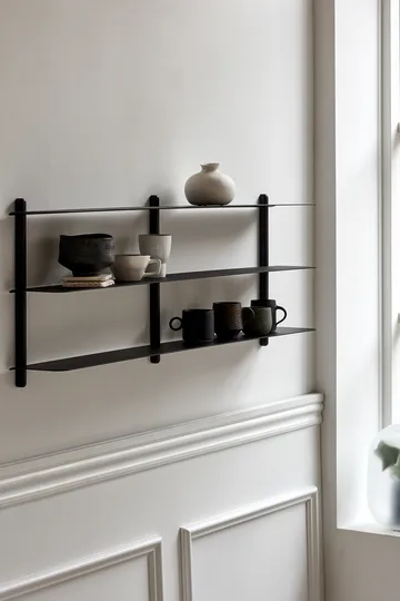 Το ράφι Nivo D της δανέζικης Gejst είναι σχεδιασμένο από τους Böttcher & Kayser, οι οποίοι σκέφτηκαν εξίσου για τη λειτουργία του ραφιού όσο και για τη φόρμα του. Το ευρύ επιτοίχιο ράφι σε δύο επίπεδα έχει κομψό σχέδιο με καθαρές γραμμές χωρίς ορατές βίδες. Το ράφι είναι μια κομψή και πρακτική προσθήκη, για παράδειγμα στην κουζίνα ή στο σαλόνι.