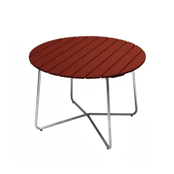 Τραπεζαρία 9A από Grythyttan Stålmöbler είναι ένα στρογγυλό τραπέζι σχεδιασμένο από τον Artur Lindqvist και μέρος της σειράς Klassiker. Το τραπέζι είναι κατασκευασμένο από ανθεκτικό χάλυβα και ταιριάζει εξίσου καλά στη βεράντα όσο και στην ανοιχτή σκηνή/πεζούλα, δημιουργώντας έναν κομψό και φιλόξενο χώρο για παρέα. Η στιβαρή κατασκευή προσφέρει μεγάλη διάρκεια ζωής, ενώ ο λιτός σχεδιασμός εναρμονίζεται με διάφορα εξωτερικά έπιπλα, για παράδειγμα A2 ή Stol 1. Το τραπέζι Τραπεζαρία 9A συνδυάζει την παραδοσιακή σκανδιναβική τεχνική με σύγχρονη λειτουργικότητα και είναι ιδανικό τόσο για χαλαρές στιγμές όσο και για ευχάριστα δείπνα στο ύπαιθρο.