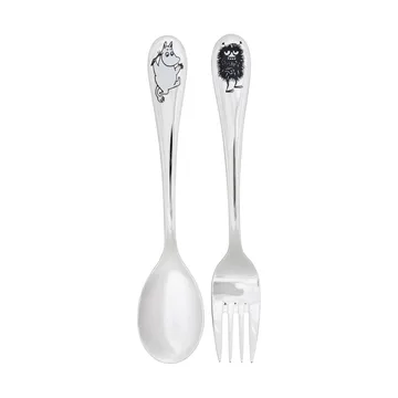 Το Moomin σετ παιδικά μαχαιροπίρουνα Συσκευασία 2 τεμαχίων προέρχεται από την Hackman και είναι κατασκευασμένα από υψηλής ποιότητας ανοξείδωτο χάλυβα. Τα μαχαιροπίρουνα περιλαμβάνουν ένα κουτάλι και ένα πιρούνι με σχέδια από τις ιστορίες του Moomin. Τα μαχαιροπίρουνα είναι ιδανικά για τους μικρούς ως το πρώτο τους σετ και μπορούν να συνδυαστούν με άλλα υπέροχα προϊόντα Moomin.