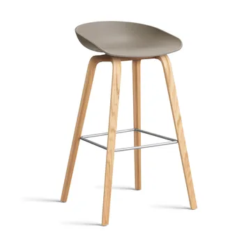 About a Stool 32 High σκαμπό μπαρ με βαμμένη βάση από δρυ 2.0, Khaki-ανοξείδωτο ατσάλι στήριγμα HAY