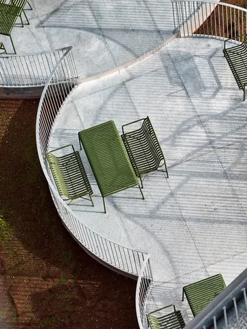 Palissade Dining παγκάκι με μπράτσα από HAY είναι μέρος της μοναδικής συλλογής Palissade, σχεδιασμένης από τους Ronan και Erwan Bouroullec. Έχει δημιουργηθεί για να εναρμονίζεται με μια ποικιλία εξωτερικών χώρων. Αυτό το παγκάκι συνδυάζει ανθεκτικότητα και κομψότητα, καθιστώντας το εξαιρετική επιλογή για κήπους και βεράντες.