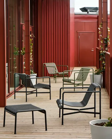 Palissade Low πολυθρόνα lounge από HAY είναι μέρος της συλλογής Palissade σχεδιασμένης από τους Erwan και Ronan Bouroullec. Αυτό το εξωτερικό έπιπλο συνδυάζει διαχρονική κομψότητα με ανθεκτική κατασκευή, καθιστώντας το ιδανικό για να ενσωματωθεί σε οποιονδήποτε υπαίθριο χώρο. Η lounge πολυθρόνα προσφέρει άνεση και στυλ, καθιστώντας την ιδανικό σημείο χαλάρωσης σε κήπους, βεράντες ή μπαλκόνια. Ο σχεδιασμός ισορροπεί λειτουργικότητα και αισθητική· έχετε ένα έπιπλο που παραμένει όμορφο παρά τις καιρικές συνθήκες. Δημιουργήστε την όαση σας με αυτήν την εμβληματική καρέκλα!
