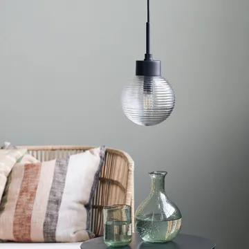 Το Gaia κρεμαστό φωτιστικό από την House Doctor είναι ένα φυσητό γυάλινο φωτιστικό που προσφέρει απαλό, λειτουργικό φως. Η χειροποίητη, ραβδωτή γυάλινη καπέλα προσδίδει μια απτική αίσθηση και επιτρέπει στο φως να παίζει όμορφα στον χώρο, ενώ η σιδερένια λεπτομέρεια στην κορυφή δημιουργεί μια προσωπική αντίθεση. Ιδανικό για γωνιά ανάγνωσης, διάδρομο ή πάνω από το τραπέζι — μόνο του ή σε ομάδα για ισορροπημένο φωτισμό. Μια διαχρονική και κομψή λεπτομέρεια που αναδεικνύει εύκολα τη διακόσμησή σας και δημιουργεί μια ζεστή ατμόσφαιρα στο σπίτι.