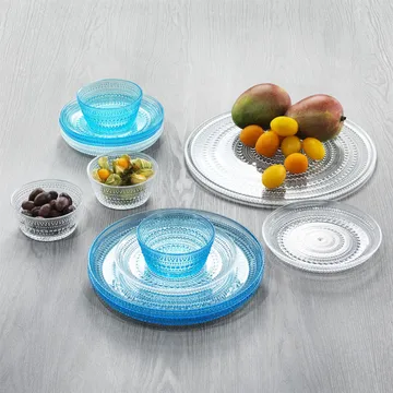 Το Kastehelmi μικρό πιάτο 24,8 cm έχει σχεδιαστεί από τον Oiva Toikka για την Iittala. Το Kastehelmi σχεδιάστηκε το 1964, αλλά το 2010 η Iittala επανεκκίνησε επιλεγμένα κομμάτια από τη σειρά. Το Kastehelmi χαρακτηρίζεται από τις όμορφες υαλώδεις σταγόνες που αρχικά δημιουργήθηκαν για να κρύψουν τις ενώσεις που σχηματίζονταν κατά την παραγωγή. Είναι επίσης οι γυάλινες χάντρες που έχουν δώσει στη σειρά το όνομά της. Το Kastehelmi είναι δηλαδή η φινλανδική λέξη για τη «σταγόνα δροσιάς».
