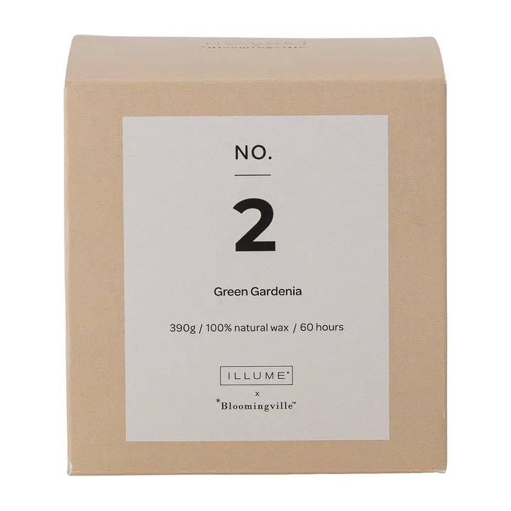 Το NO. 2 Green Gardenia αρωματικό κερί από την Illume x Bloomingville προσφέρει ένα ανθισμένο και θηλυκό άρωμα. Τα αρώματα αποτελούνται από κορυφαίες, καρδιάς και βασικές νότες, όπως ακριβώς συντίθεται ένα άρωμα. Όταν ανάβετε το αρωματικό κερί NO. 2 Green Gardenia, αρχικά θα νιώσετε αρώματα από περγαμόντο, ηλιοτρόπιο και θάλασσα. Το κλασικό ανθισμένο άρωμα αναβαθμίζεται και εξευγενίζεται από λευκά άνθη και πλούσια ρητινώδη ξύλα. Νότες από υπέροχο σανταλόξυλο και τονκαμπέλ, που δίνουν ένα ωμό άρωμα παρόμοιο με βανίλια, συμπληρώνουν και ολοκληρώνουν το άρωμα.
