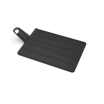 Σανίδα κοπής Chop2pot plus μαύρη από Joseph Joseph είναι μια αναδιπλούμενη σανίδα κοπής που διευκολύνει το μαγείρεμα. Διαθέτει επιφάνεια φιλική προς το μαχαίρι και αντιολισθητική για κάθε είδους επεξεργασία τροφίμων. Όταν πιέζεται η λαβή, οι πλευρές αναδιπλώνονται και σχηματίζουν μια πρακτική αυλάκωση για να τοποθετείτε εύκολα το ψιλοκομμένο φαγητό στην κατσαρόλα ή να πετάτε τα απορρίμματα στα σκουπίδια. Επιφάνεια κοπής: 34,5 × 26 cm.