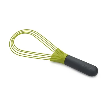 Twist 2-σε-1 χτυπητήρι από Joseph Joseph συνδυάζει έξυπνο σχεδιασμό με λειτουργικότητα. Με το γύρισμα της λαβής αλλάζετε εύκολα μεταξύ ενός επίπεδου αναδευτήρα για να ανακατεύετε σάλτσες και ενός balloon αναδευτήρα για να χτυπάτε κρέμα ή ασπράδια αυγού. Οι καλυμμένες με σιλικόνη ανοξείδωτες συρμάτινες ράβδοι αντέχουν σε θερμοκρασίες έως 200°C και είναι φιλικές για non-stick σκεύη. Αυτό το χτυπητήρι πλένεται εύκολα στο πλυντήριο πιάτων και διπλώνει για πρακτική αποθήκευση.