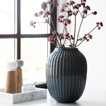 Hammershøi βάζο μεγάλο από την Kähler είναι μια διαχρονική κεραμική δημιουργία σχεδιασμένη από τον Hans-Christian Bauer. Με τις χαρακτηριστικές ραβδώσεις και τη κλασική σιλουέτα της, τιμά την μακρά χειροτεχνική παράδοση της Kähler και τις πρωτότυπες μορφές του Svend Hammershøi. Το βάζο γίνεται ένα ζεστό, διακοσμητικό επίκεντρο στο σπίτι — ιδανικό τόσο για μπουκέτα όσο και ως αυτόνομο design αντικείμενο σε μπουφέ ή περβάζι. Η χειροποίητη αίσθηση και η προσεκτική τεχνική καθιστούν κάθε κομμάτι μοναδικό και ανθεκτικό, ένα όμορφο στοιχείο που προσδίδει στον χώρο προσωπικότητα και παρουσία.