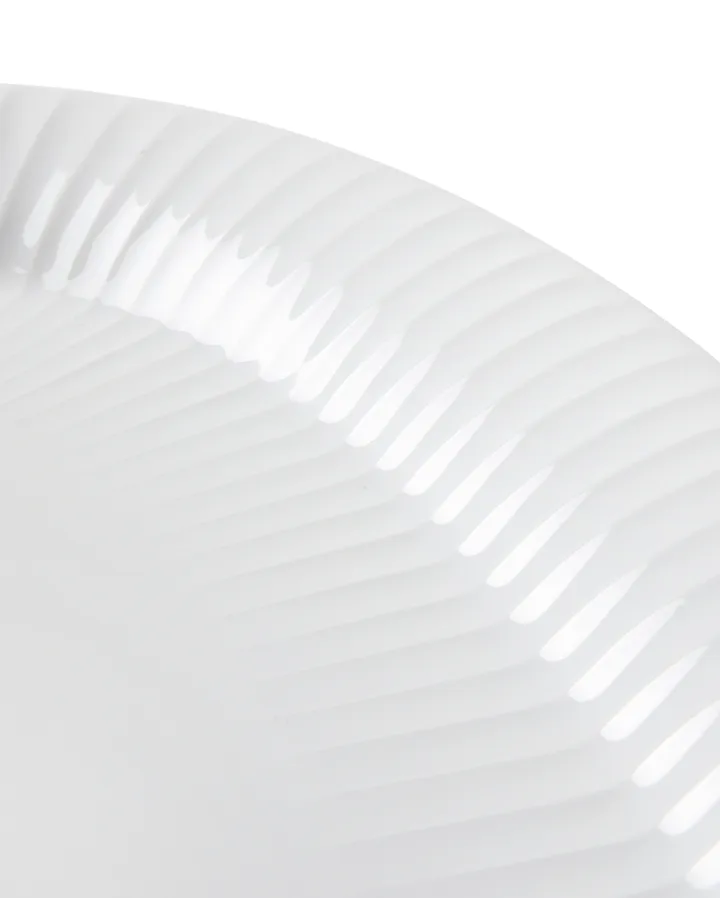 Η πιάτο σερβιρίσματος oval 40x22,5 εκ. Hammershøi ανήκει στη δημοφιλή σειρά Hammershøi από την Kähler και ταιριάζει άριστα στο τραπέζι είτε για καθημερινή χρήση είτε για γιορτινές περιστάσεις. Η σειρά είναι σχεδιασμένη από τον Hans-Christian Bauer και αναγνωρίζεται από την αυλακωτή της επιφάνεια και το απλό, απαλό της σχήμα. Το oval πιάτο έχει μια διαχρονική κομψότητα που μπορεί εύκολα να συνδυαστεί με άλλα μέρη της ίδιας σειράς ή άλλα είδη πορσελάνης από την Kähler.