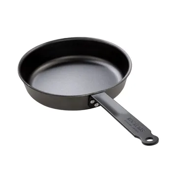 Kockums τηγάνι carbon steel από την Kockums Jernverk είναι ένα καλά ισορροπημένο τηγάνι κατασκευασμένο στην Anderstorp από σουηδικό 3 mm carbon steel της SSAB. Είναι περίπου 20% πιο ελαφρύ από ένα χυτοσιδηρό τηγάνι και διαθέτει μια αμμοβολημένη επιφάνεια επεξεργασμένη με σουηδικά φυτικά έλαια για εξαιρετικές ιδιότητες τηγανίσματος και φυσική αντικολλητική δράση — έτοιμο για χρήση άμεσα χωρίς απαιτούμενο seasoning. Η πιο ίσια, ψηλότερη πλευρά προσφέρει μεγαλύτερη διάμετρο βάσης και μεγαλύτερη επιφάνεια τηγανίσματος, ενώ το τηγάνι αντέχει σε υψηλές θερμοκρασίες, διαχέει τη θερμότητα ομοιόμορφα και λειτουργεί σε όλες τις πηγές θερμότητας καθώς και σε φούρνο μέχρι 200°. Η μαυρισμένη λαβή με ανεβασμένο λογότυπο Kockums έχει τρύπα για ανάρτηση. Ένα στιβαρό, σουηδικής κατασκευής τηγάνι που γίνεται καλύτερο με τον χρόνο.