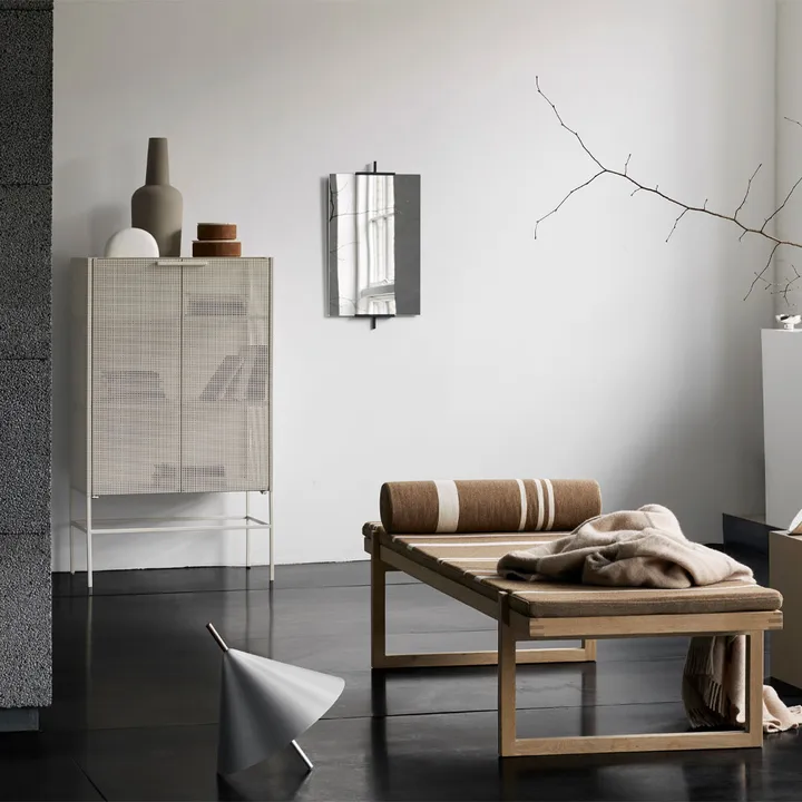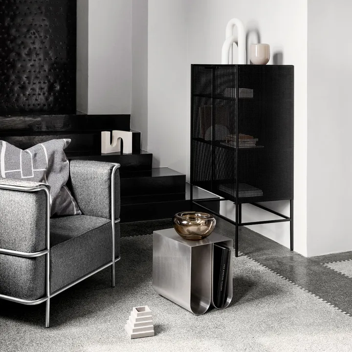 Ντουλάπι με πλέγμα από Kristina Dam Studio συνδυάζει λειτουργικότητα και αισθητική με τις διάτρητες επιφάνειες από χάλυβα. Το ντουλάπι προσφέρει αίσθηση ανοιχτότητας και σας επιτρέπει να διακρίνετε τις σιλουέτες των αντικειμένων σας. Είναι μια κομψή και πρακτική λύση για όλες τις ανάγκες αποθήκευσης στο σπίτι.