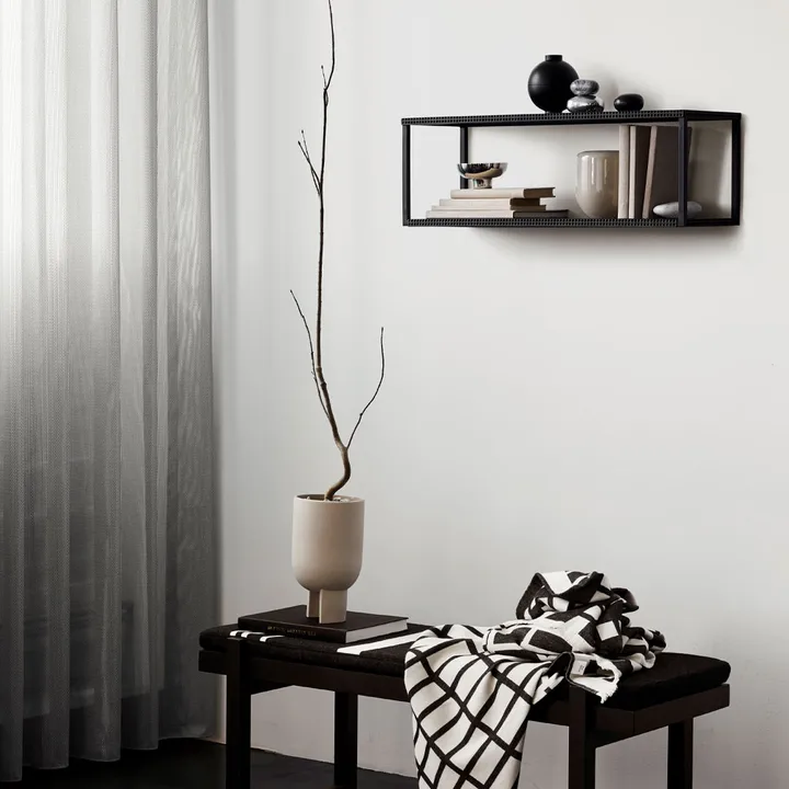 Ράφι τοίχου σε σχήμα πλέγματος από Kristina Dam Studio είναι κατασκευασμένο από υψηλής ποιότητας ηλεκτροστατικά βαμμένο χάλυβα και διατίθεται σε μαύρο ή λευκό. Αποθηκεύστε τα πάντα, από βιβλία έως είδη κουζίνας, σε αυτό το διακριτικό ράφι και αξιοποιήστε στο έπακρο τον τοίχο σας.