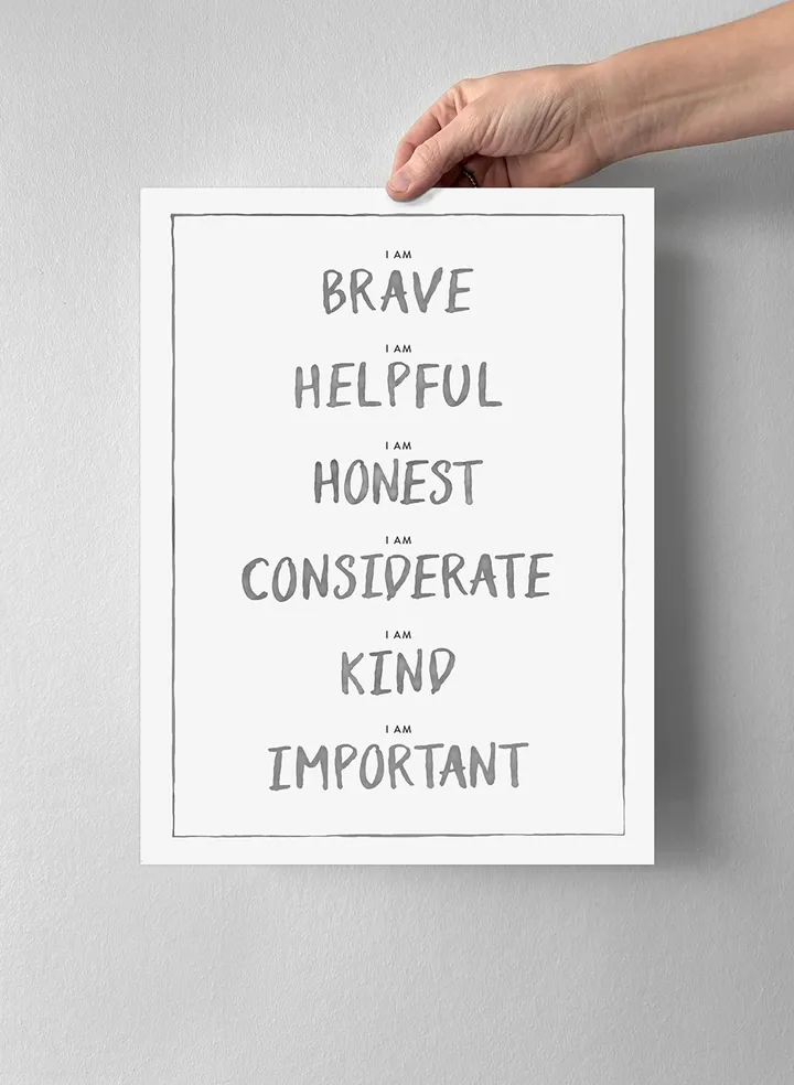 I am αφίσα 30x40 εκ. από Kunskapstavlan® είναι μια εμπνευσμένη αφίσα, τυπωμένη σε χαρτί υψηλής ποιότητας, που περιγράφει τι σημαίνει να είσαι καλός φίλος. Δημιουργήθηκε σε συνεργασία με το Friends και λειτουργεί τόσο ως διακοσμητικό όσο και ως εκπαιδευτικό στοιχείο για το παιδικό δωμάτιο. Ιδανική για να ενθαρρύνει συζητήσεις για τη φιλία και να ενισχύσει την κατανόηση των παιδιών σχετικά με τις σχέσεις.