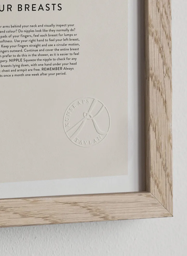 Love your breasts αφίσα από Kunskapstavlan® είναι μια σημαντική αφίσα, τυπωμένη σε χαρτί υψηλής ποιότητας, που έχει δημιουργηθεί σε συνεργασία με το Bröstcancerförbundet για να υπενθυμίζει τη σημασία της αυτοεξέτασης του μαστού. Ο ενημερωτικός σχεδιασμός βοηθά στην αναγνώριση πρώιμων αλλαγών και στη διάδοση ευαισθητοποίησης για τον καρκίνο του μαστού. Ένα τέλειο δώρο που συνδυάζει αισθητική με ένα ουσιαστικό μήνυμα και ενθαρρύνει την αυτοφροντίδα.