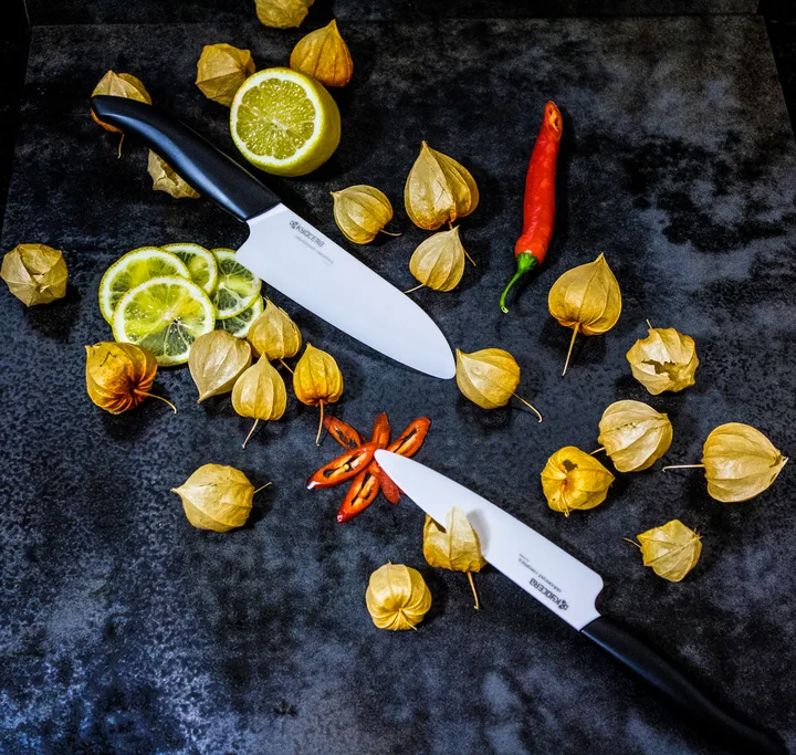 Kyocera FK κεραμικό santoku μαχαίρι από την Kyocera είναι ένα ελαφρύ και κοφτερό santoku που κάνει τις καθημερινές εργασίες στην κουζίνα ευχάριστες. Η ψηλή λάμα προσφέρει καλό έλεγχο και καθιστά εύκολο το κόψιμο, το ψιλοκόψιμο και την ώθηση των υλικών προς τα εμπρός χωρίς τα δάχτυλα να ακουμπούν την επιφάνεια κοπής. Η κεραμική λάμα διατηρεί την κοφτερότητα για μεγάλο χρονικό διάστημα και απαιτεί ελάχιστη συντήρηση. Πλένεται στο πλυντήριο πιάτων, αλλά αποφύγετε τη χρήση του μαχαιριού σε κατεψυγμένα τρόφιμα, σκληρά κόκαλα ή οστρακοειδή. Μια αξιόπιστη επιλογή για όποιον θέλει ακρίβεια και απλότητα στο μαγείρεμα.