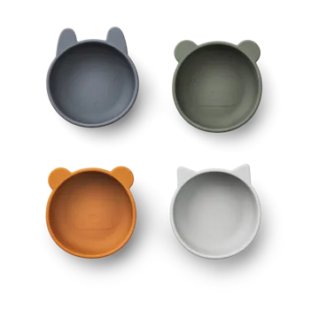 Το σετ σιλικονούχων μπολ Iggy 4 τεμαχίων από την Liewood είναι κατασκευασμένα από 100% σιλικόνη και είναι ιδανικά για τα πρώτα γεύματα του παιδιού. Αυτά τα σιλικονούχα μπολ είναι αδιάθραυστα, ασφαλή για πλυντήριο πιάτων και διακοσμημένα με παιχνιδιάρικες λεπτομέρειες ζώων. Το συμπαγές μέγεθος είναι ιδανικό για μικρές μερίδες ή σνακ.
