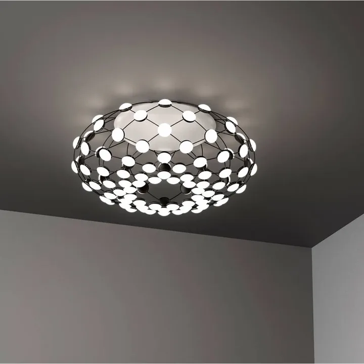 Mesh φωτιστικό οροφής από Luceplan έχει σχεδιαστεί από τον Francisco Gomez Paz για να μοιάζει με ένα δίχτυ, όπου κάθε σημείο φωτός τοποθετείται στους κόμβους των νημάτων. Αυτό το φωτιστικό συνδυάζει αισθητική και λειτουργικότητα με συναρπαστικό τρόπο και ταιριάζει άψογα σε διάφορους χώρους.