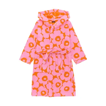Pieni Unikko μπουρνούζι S από Marimekko είναι ένα απαλό μπουρνούζι από βαμβάκι με το κλασικό μοτίβο Unikko. Διαθέτει τσέπες και ζώνη στη μέση και είναι ιδανικό μετά το ντους ή ως ρόμπα πρωινού.