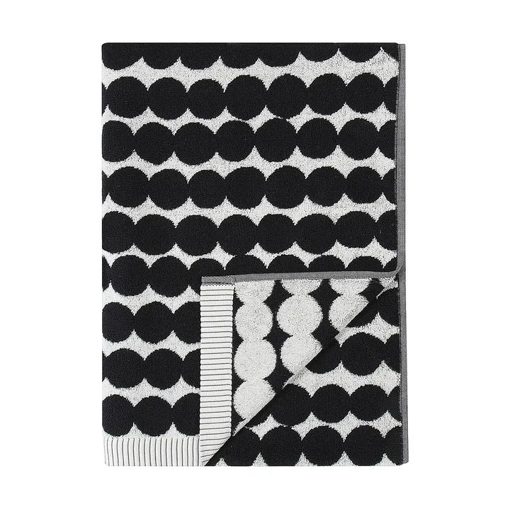 Ανανεώστε το μπάνιο σας με τη στιλάτη Räsymatto πετσέτα μαύρη από τη Marimekko, με σχέδιο της Maija Louekari. Η πετσέτα είναι κατασκευασμένη από μαλακό και υψηλής ποιότητας βαμβακερό ύφασμα με τις κλασικές μαύρες και λευκές κουκκίδες που είναι το σήμα κατατεθέν της σειράς Räsymatto. Η πετσέτα διατίθεται σε διάφορα μεγέθη για να ολοκληρώσετε το μπάνιο σας!