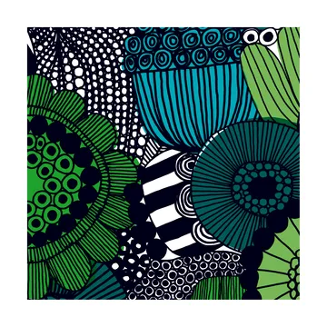 Χαρτοπετσέτα με το σχέδιο Marimekko Siirtolapuutarha δημιουργήθηκε από τη Maija Louekari το 2009. Siirtolapuutarha είναι η φινλανδική λέξη για τον αστικό κήπο και το σχέδιο εμπνέεται από τη βλάστηση που μπορείς να βρεις εκεί και στη διαδρομή από το κέντρο της πόλης προς τον κήπο. Το παιχνιδιάρικο και χαρούμενο σχέδιο στις πετσέτες ζωντανεύει κάθε τραπέζι!