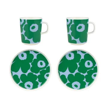 Το Unikko σετ πρωινού από τη φινλανδική Marimekko αποτελείται από δύο κούπες και δύο πιατάκια από κεραμικό με το διάσημο μοτίβο Unikko, που σχεδιάστηκε από την Maija Isola τη δεκαετία του 1960. Η μορφή των κουπών και των πιατακιών αναπτύχθηκε από τον Sami Ruotsalainen. Το ανθισμένο σετ είναι ιδανικό τόσο για τον καφέ με φίλους όσο και για το πρωινό με την οικογένεια.