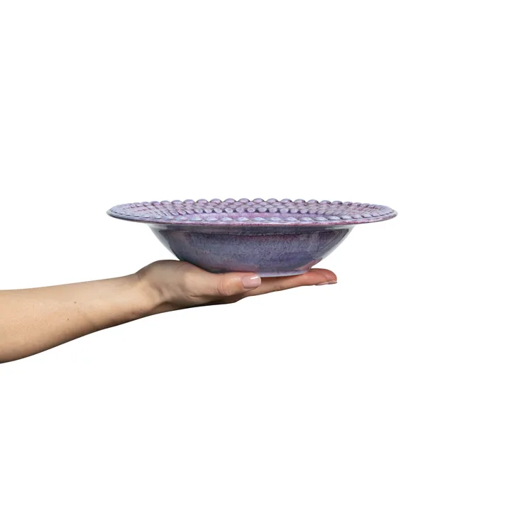 Bubbles πιάτο σούπας 25 cm από τη Mateus είναι ένα χειροποίητο και χειρογραφικά ζωγραφισμένο πιάτο σούπας σχεδιασμένο από τη Filippa Burenstam Linde. Η σειρά Bubbles αντλεί έμπνευση από τις πουά της μόδας και δίνει στο στρώσιμο του τραπεζιού μια παιχνιδιάρικη αλλά κομψή αίσθηση. Το πιάτο ταιριάζει εξίσου καλά σε μια κρεμώδη σούπα όσο και σε ζυμαρικά και αναβαθμίζει το καθημερινό γεύμα με τον χαρακτήρα του. Χάρη στην τεχνική χειροτεχνίας, κάθε κομμάτι είναι μοναδικό — μια προσωπική λεπτομέρεια που κάνει τη στιγμή του φαγητού πιο χαρούμενη και πιο ζεστή.