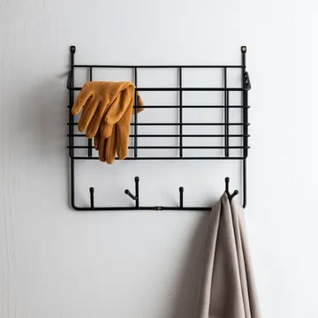 Το Mitten ράφι S είναι ένα πρακτικό καλάθι αποθήκευσης με γάντζους σχεδιασμένο από τον Olof Kolte για τη σουηδική μάρκα Maze. Το Mitten ράφι S είναι μια πιο κομψή παραλλαγή του πρωτότυπου Mitten ράφι και είναι ιδανικό για την αποθήκευση στο μικρότερο χολ, την γκαρνταρόμπα ή την κουζίνα. Τοποθετήστε τα γάντια και κασκόλ στο καλάθι και κρεμάστε τα μπουφάν στους τέσσερις γάντζους. Ή τοποθετήστε βιβλία μαγειρικής και μαγειρικά σκεύη στο ράφι και κρεμάστε τις πετσέτες κουζίνας στους γάντζους. Ολόκληρη η κατασκευή του Mitten ράφι γίνεται στη Σουηδία.