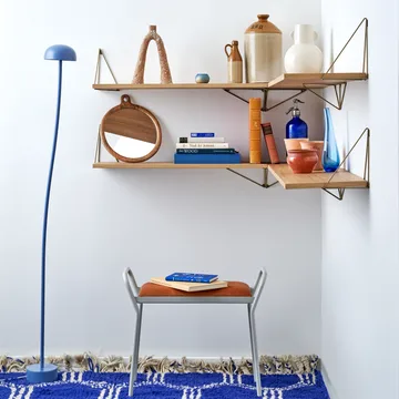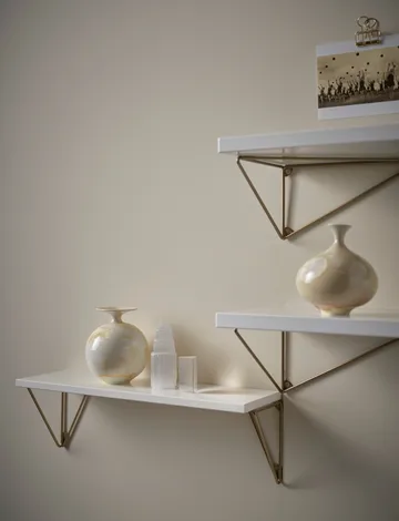 Pythagoras βραχίονες, συσκευασία 2 τεμαχίων από Maze είναι ένα ευφυές σύστημα κονσολών σχεδιασμένο από τον Gustav Rosén που σας επιτρέπει να δημιουργήσετε προσωπικά ράφια στο σπίτι. Οι τριγωνικές κονσόλες μπορούν να στερεωθούν με τέσσερις διαφορετικούς τρόπους, προσφέροντας ευέλικτο σχεδιασμό και παιγνιώδη γεωμετρία στο σαλόνι, το υπνοδωμάτιο ή την κουζίνα. Οι κονσόλες παραδίδονται σε συσκευασία 2 τεμαχίων και είναι κατασκευασμένες από ηλεκτροστατικά βαμμένο χάλυβα σύρμα για σταθερότητα και μακροχρόνια ανθεκτικότητα. Συμπεριλαμβάνονται δύο στηρίγματα που ασφαλίζουν την επιφάνεια του ραφιού στις προκαθορισμένες οπές, καθιστώντας την εγκατάσταση απλή και ασφαλή. Ιδανικό για όσους θέλουν να συνδυάσουν λειτουργικότητα και αισθητική στη διακόσμηση.