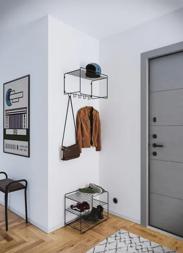 Το Uptown ράφι για καπέλα από τη Maze είναι κατασκευασμένο από μερικώς ανακυκλωμένο, βαμμένο με σκόνη, μεταλλικό σύρμα και έρχεται σε έναν μινιμαλιστικό φουνκιστικό σχεδιασμό. Το ράφι προσθέτει μια εντυπωσιακή αλλά ταυτόχρονα αεράτη αίσθηση και προσφέρει τόσο γάντζους για μπουφάν, ράβδους για κρεμάστρες όσο και ένα ράφι για καπέλα και κουτιά αποθήκευσης. Το στενό πλάτος και η διακριτική κατασκευή του Uptown ράφι για καπέλα το κάνουν επίσης εύκολο στην τοποθέτηση ακόμη και στον μικρότερο διάδρομο.