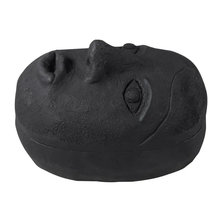 Το Art piece βάζο πρόσωπο 9x12 cm από τη Mette Ditmer από σκληρή πέτρα έρχεται σε οβάλ μορφή με ένα καπάκι που απεικονίζει ένα πρόσωπο. Το κουτί έχει μια τραχιά υφή που θυμίζει κεραμικό και αποτελεί ένα ενδιαφέρον κεντρικό σημείο για όλους τους χώρους του σπιτιού. Το βάζο είναι όμορφο να τοποθετηθεί όπως είναι, αλλά μπορεί επίσης να χρησιμοποιηθεί για την αποθήκευση κοσμημάτων, αξεσουάρ μαλλιών ή άλλων μικροαντικειμένων.